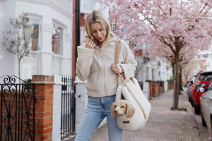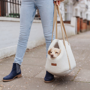 Whether you're navigating city streets, travelling on public transport or heading off on a countryside escape, this cream sherpa dog carrier delivers elevated functionality with signature Teddy Maximus style.